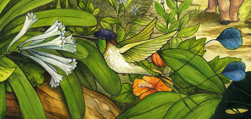 Die anderen Tiere schauen mir nach und bewundern mein buntes Federkleid, wenn ich wie ein glitzernder Edelstein durch die Luft sause. Hach und überall herrlich duftende Blumen, aus denen ich Nektar schlürfen kann. Ein Schlaraffenland.